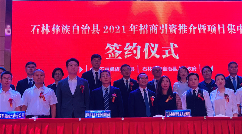 签约仪式上,石林县委书记陈瑞斌在致辞中表示,近年来,石林县良好的发展环境吸引了越来越多的企业青睐石林、投资石林、落户石林,实现了企业壮大、石林发展双赢的良好发展态势。下一步,石林县将围绕云南“三张牌”和昆明“188”重点产业,紧扣打造国际知名旅游目的地和现代特色农业基地目标,按照“23521”发展思路,推进“51068”工程,扬优势、补短板、强产业,为加快县域经济社会高质量跨越发展。