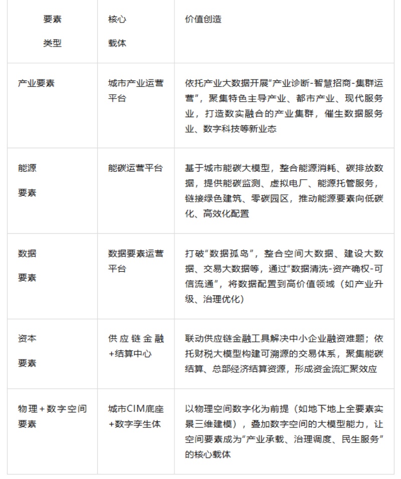 数字时代,城市的高质量发展,本质是“产业、能源、数据、资本、物理+数字空间”五大要素的高效协同。城市建设数字空间要素市场以“数据要素运营平台”为支撑,打破要素间的壁垒,构建“聚集-流通-辐射”的运营机制,让五大要素从“分散孤立”走向“集成联动”。
