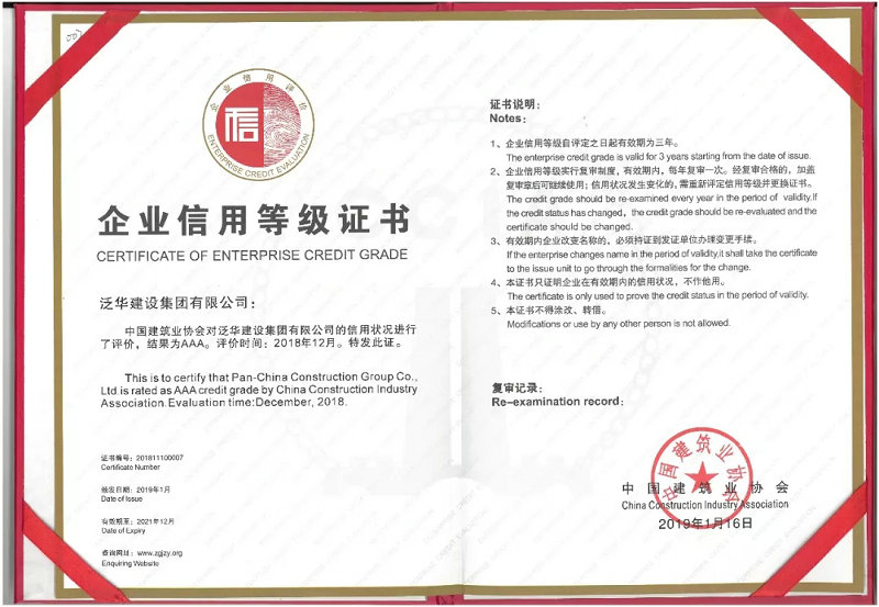 2019年1月,泛华集团入选由中国建筑业协会公布的2018 年度全国建筑业 AAA 级信用企业名单。