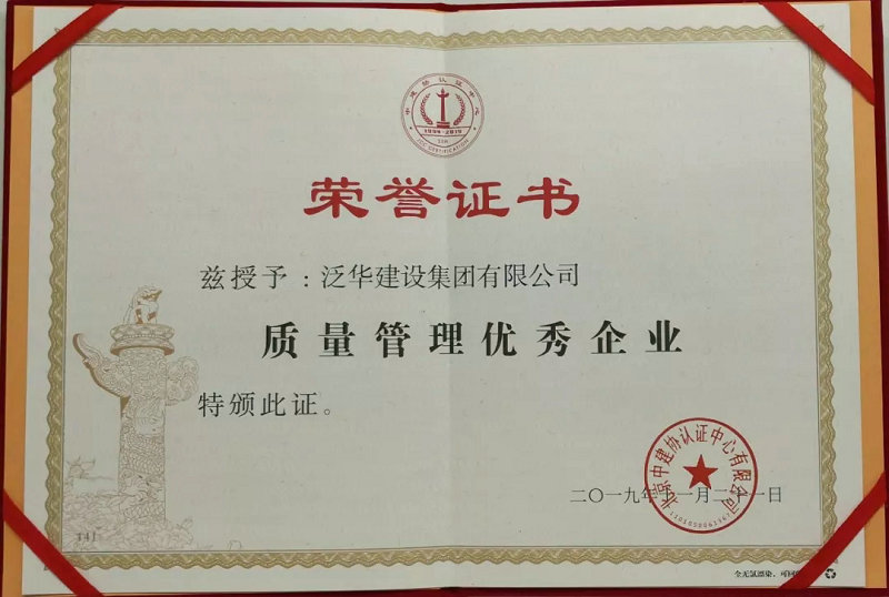 2019年12月,工程建设领域企业高质量发展会议在京召开,大会对“质量管理优秀企业”“质量管理卓越领导者”和“质量管理先进个人”进行了表彰。泛华集团荣获“质量管理优秀企业”和“质量管理先进个人”荣誉称号。