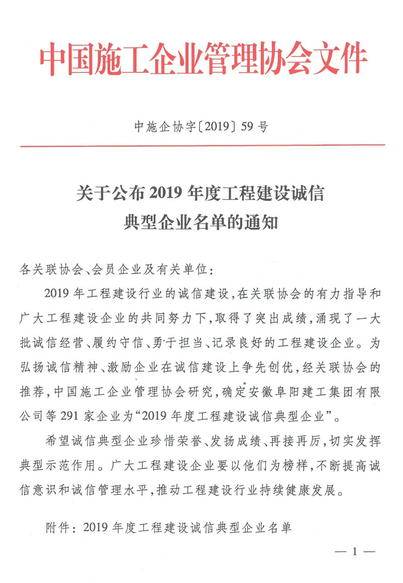 中国施工企业管理协会开展了“工程建设诚信典型企业”创建活动,经过四个多月的评选后,公布了“2019年度工程建设诚信典型企业名单”,泛华集团等291家企业入选。