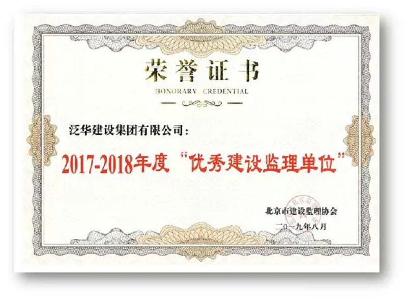 2019年8月28日,北京市监理协会召开第六届三次会员大会,会议上对2017-2018年度监理行业内表现突出的优秀单位进行表彰,泛华集团荣获“2017-2018年度优秀建设监理单位”荣誉。这已是泛华集团连续多年获此殊荣。