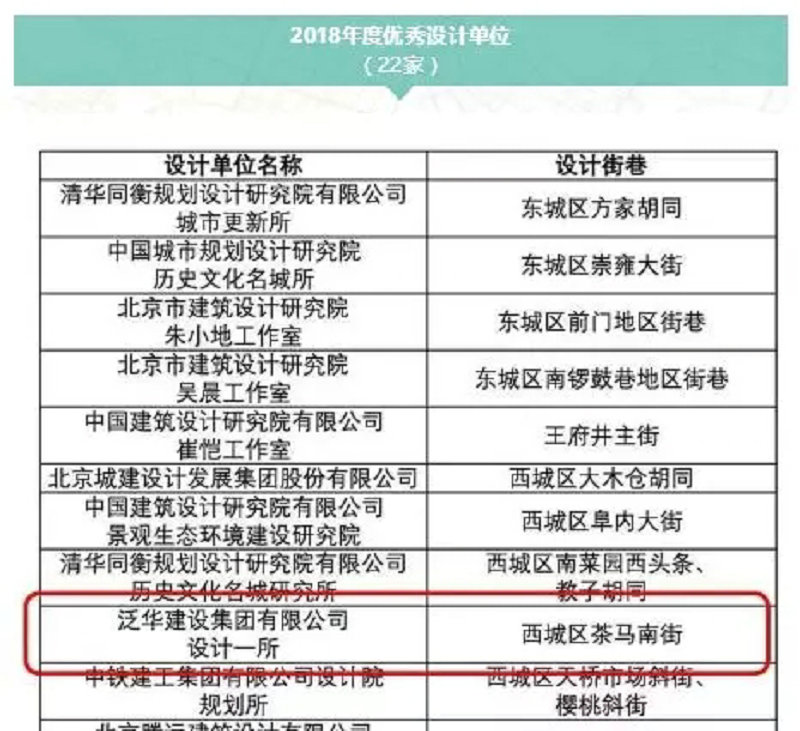 2019年4月19日,首都文明办、北京市城市管理委、市规划自然资源委召开背街小巷环境整治提升和深化文明创建工作交流推进会,总结2018年以来背街小巷环境整治提升工作,通报表彰了15名责任规划师、22家设计单位。泛华集团位列其中,为首都城市更新贡献泛华品质。