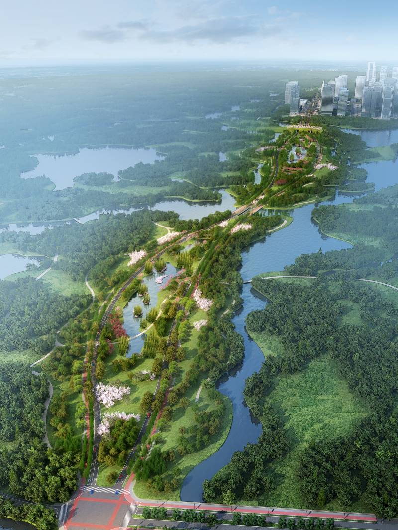泛华在设计时,深入研究了智能交通信号控制系统、智能人行过街系统,同时结合智慧照明灯杆,集成5G、WIFI、新能源充电桩等设施,推动智慧技术的融合应用。黄河路以“穿透共融、自然绿苑”为设计主题,将城市与自然相融,打造一条融入自然与城市的生态廊道,一条见水见林不见路的景观绿道,一条集智慧海绵人文的科技畅道。