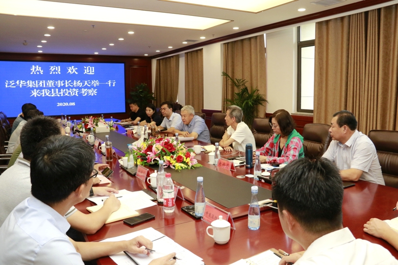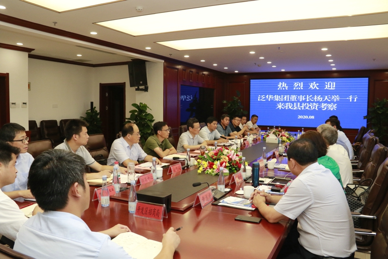 8月21日,泛华集团董事长杨天举率队赴太湖县考察,中共太湖县委书记程志翔,中共太湖县委常委、县开发区管委会主任赵俊杰,发改委、自然资源和规划局、科经信局、数据资源局、招商中心、税务局、生态环境分局、经济开发区经济发展局、经济开发区招商局等单位主要负责人参加活动。中国投资协会海外联合会副会长金乐、红星美凯龙安徽公司总经理何文海、安徽安广双龙物流集团董事长曹龙盛及泛华投资集团副总裁巩海等一同参加活动。